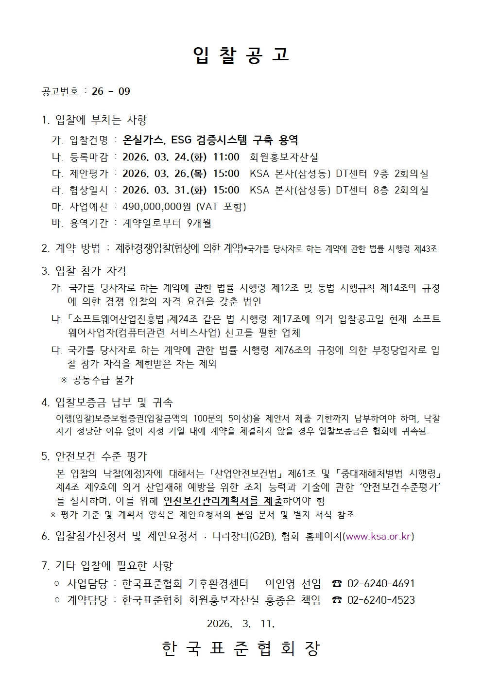 [입찰공고]온실가스, ESG 검증시스템 구축 용역