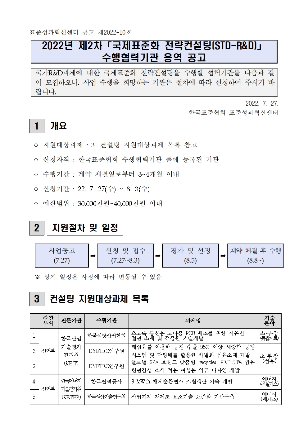 2022년도 제2차 「국제표준화 전략컨설팅」 수행협력기관 용역 공고